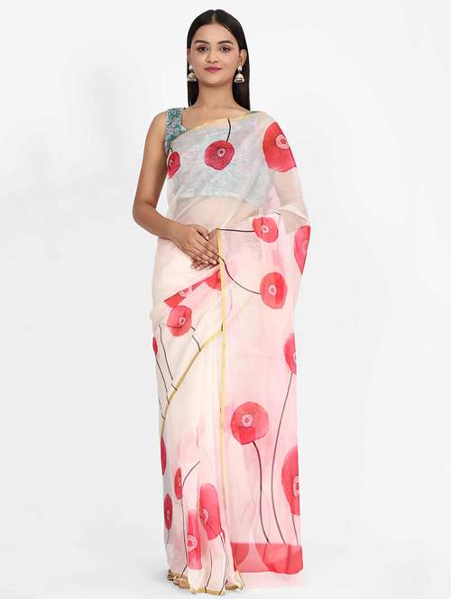 floral printed saree with blouse