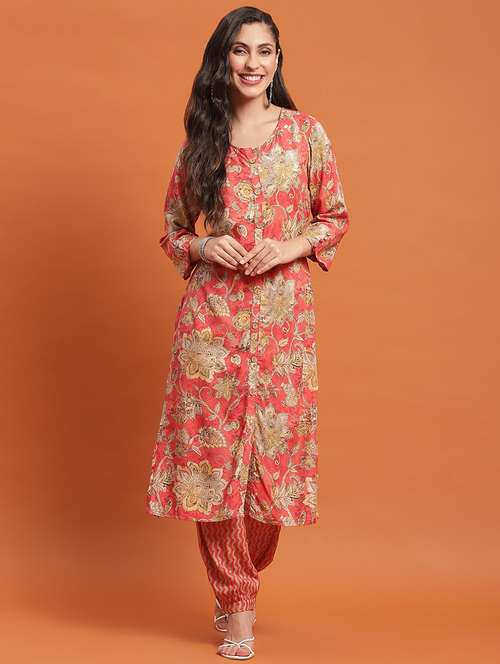 - Find gorgeous sets of ethnic wears in trending designs in red colors suitable for casual wear of occasions.