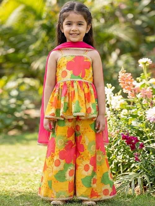 - » girls printed kurta and palazzo set with dupatta