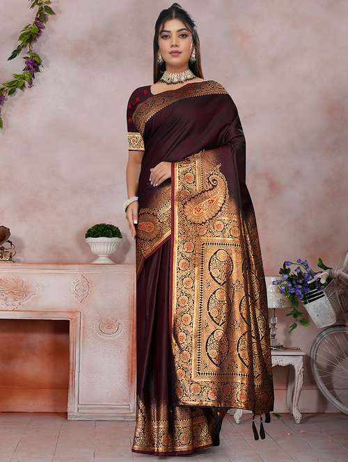 Satin Red Silk Saree with Gold Zari Woven Border & Paisley Pallu Wedding & Festive Wear by Maharanga