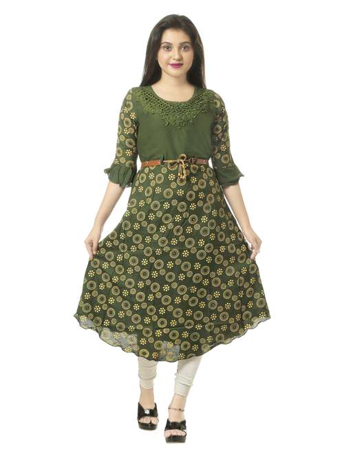 - Grab this beautiful kurta made up of viscose fabric featuring round neck designs.