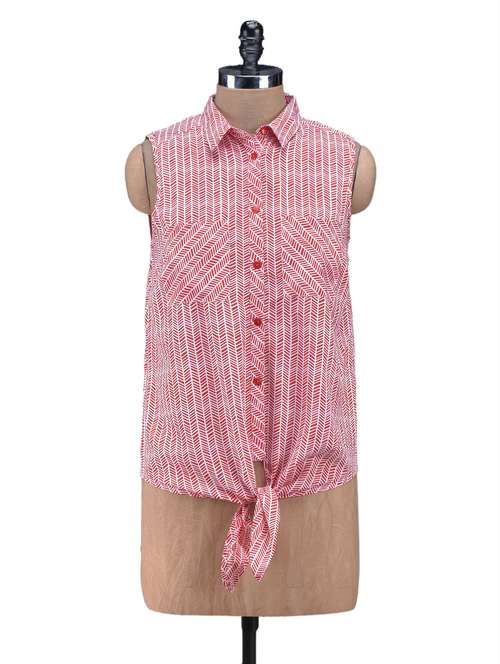 - » red & white printed polyester shirt