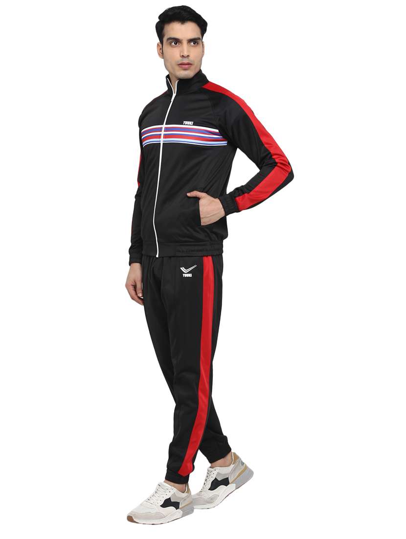 - » black taped track suit