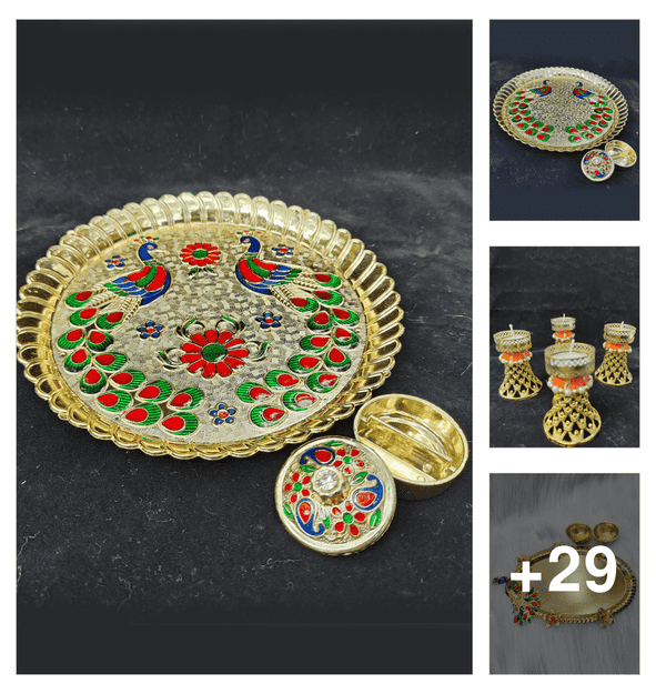 brass puja roli chawal, elaichi, mishri 4 bowl stand