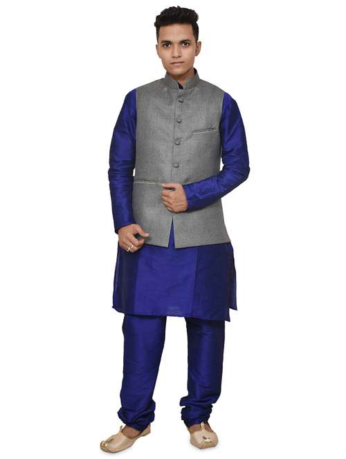 - » royal blue silk blend kurta pyjama with jacket ethnic wear set