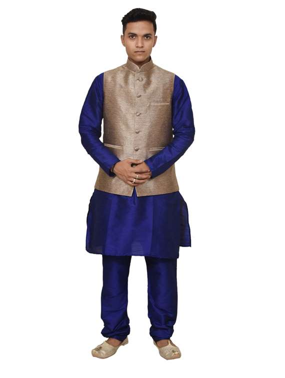 - » royal blue silk blend kurta pyjama with jacket ethnic wear set