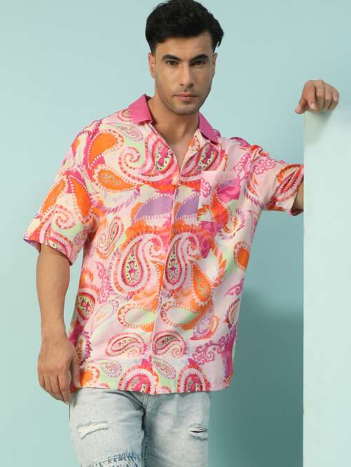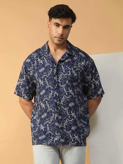 - » men self design short sleeve loose fit casual shirt
