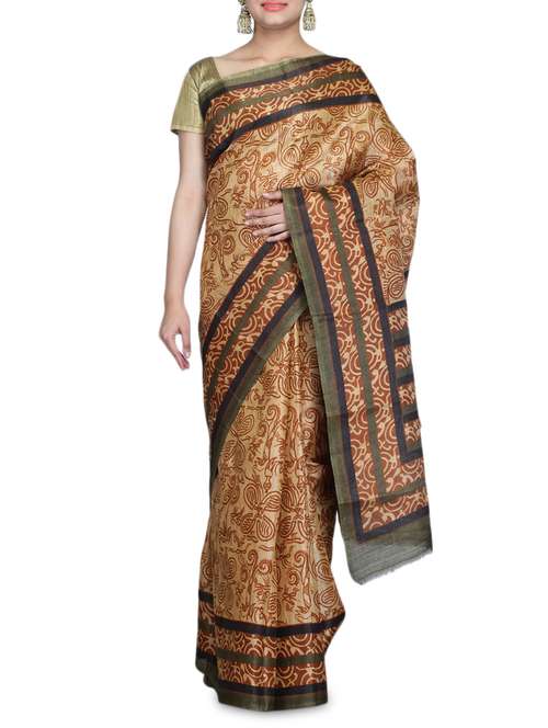 #1 cream painted art bhagalpuri ghitcha silk sari & इसी तरह के उत्पाद...