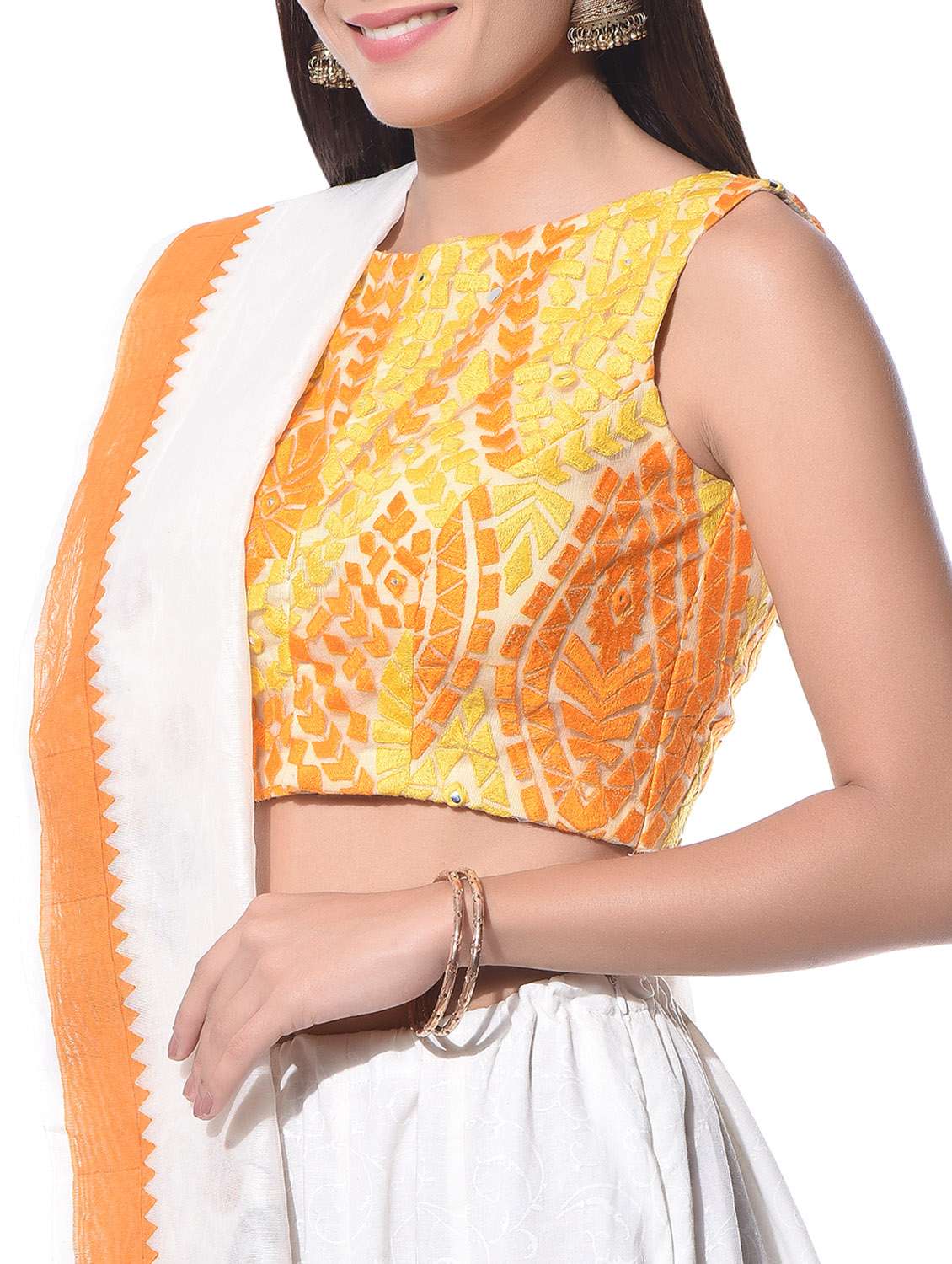 #4 yellow and orange threadwork boatneck blouse & similar products...