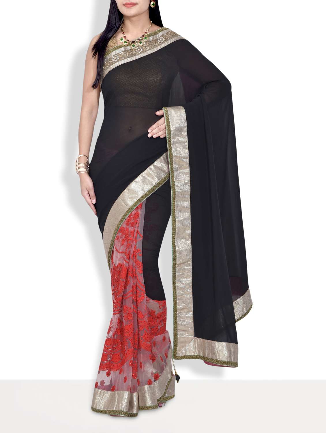 #1 black embroidered net handworked half and half saree with blouse & similar products...