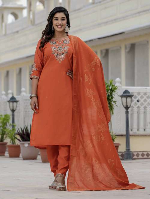 - Browse through the latest range of ethnic sets for women with tailored sleeve designs with embroidered works.