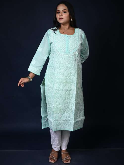 - Grab this beautiful kurta made up of cotton fabric featuring notch neck designs.