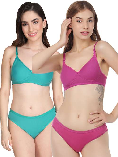 women pack of 2 solid bra and panty set