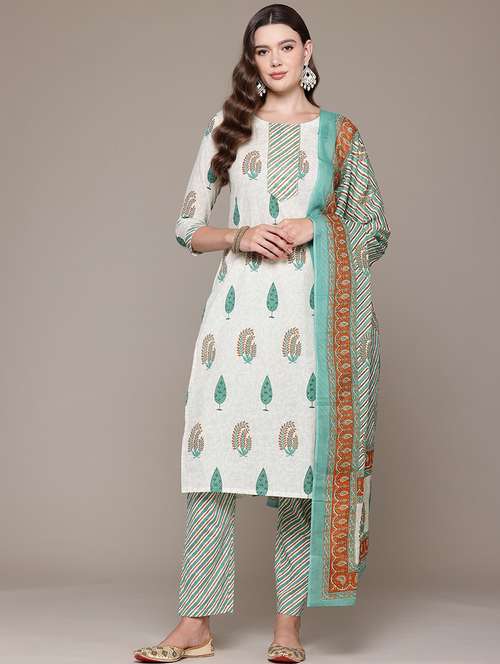 • Find gorgeous sets of ethnic wears in trending designs in sea green colors suitable for festive wear of occasions.