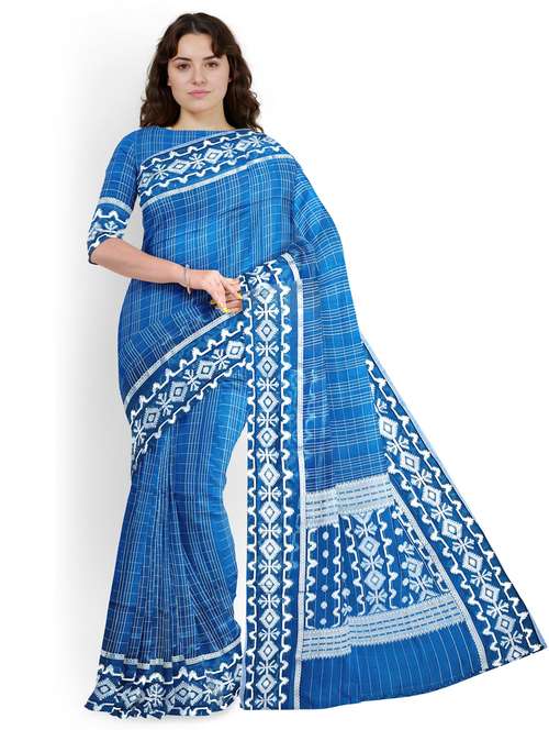 women checkered bordered saree with blouse
