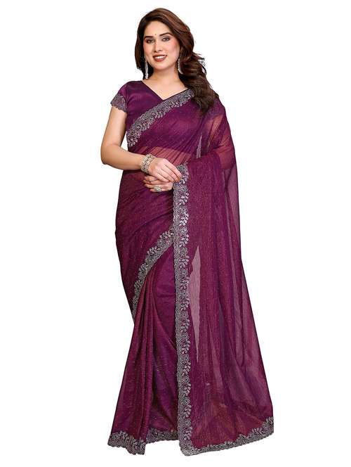 women solid with work embellished saree with blouse - 22384784 -  Standard Image - 1 women solid with work embellished saree with blouse - 22384784 -  Zoom Image - 1
