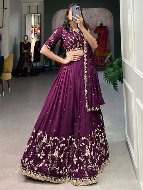 Color : Mehendi, Introducing our Women's Vichitra Fabric Chain Stitch Embroidered Work Lehenga Choli, Dupatta Lenght is 2.20 Meter. Lehenga Flair : 3 Mt, Lehenga Length is 42 Inch. Lehenga is Semi-Stitched which can be fitted up to 42 inch Waist Size. Choli (Blouse) is unstitched and can be altered according to your fit and style that you require. It has unstitched Choli with Embroidered Work. Dry Clean Or Normal Hand Wash. Product color may slightly vary due to photographic lighting sources or your monitor settings.