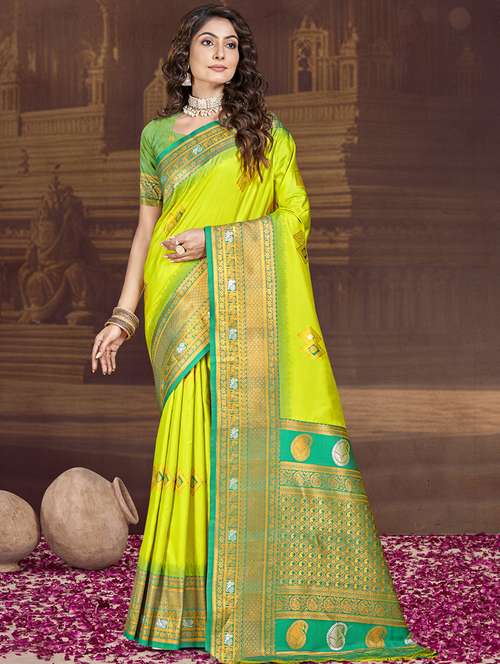Sangam Prints Lime Green SILK Woven Work Traditional Saree
