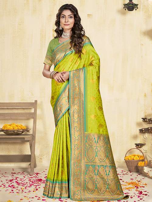 Sangam Prints Lime Green SILK Woven Work Traditional Saree