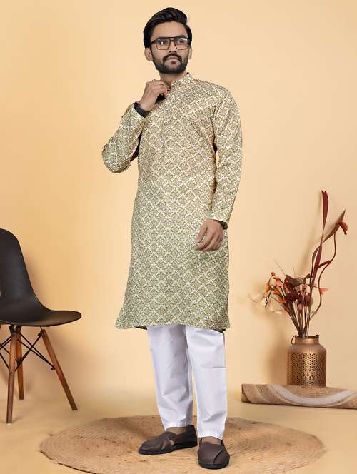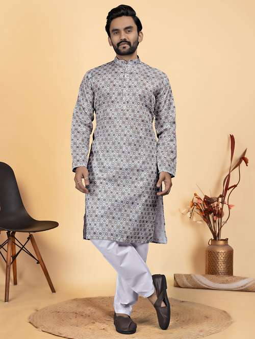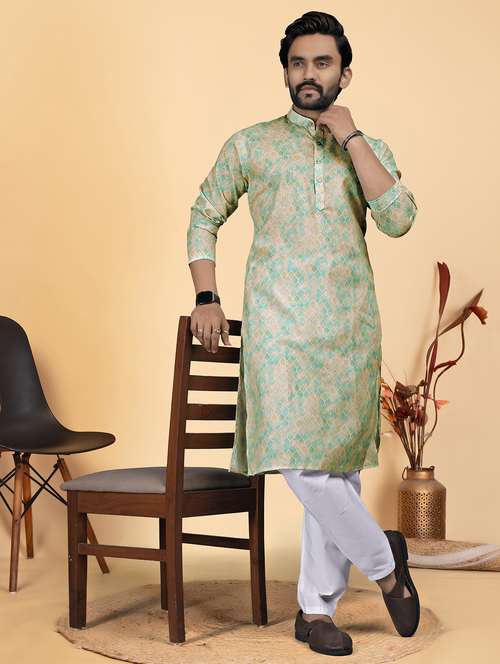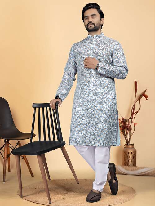 - » men printed mandarin neck kurta pyjama ethnic wear set