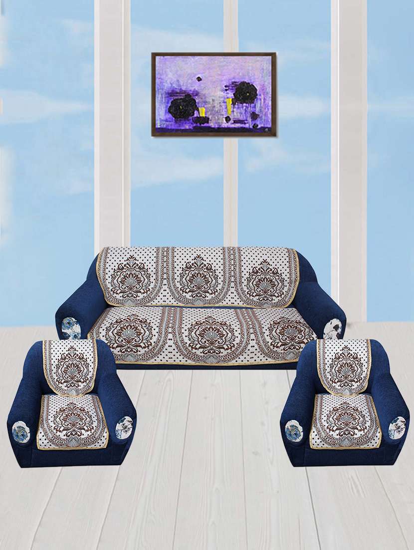 - » polyester fabric ethnic design sofa covers set of 6 seater - silver & maroon