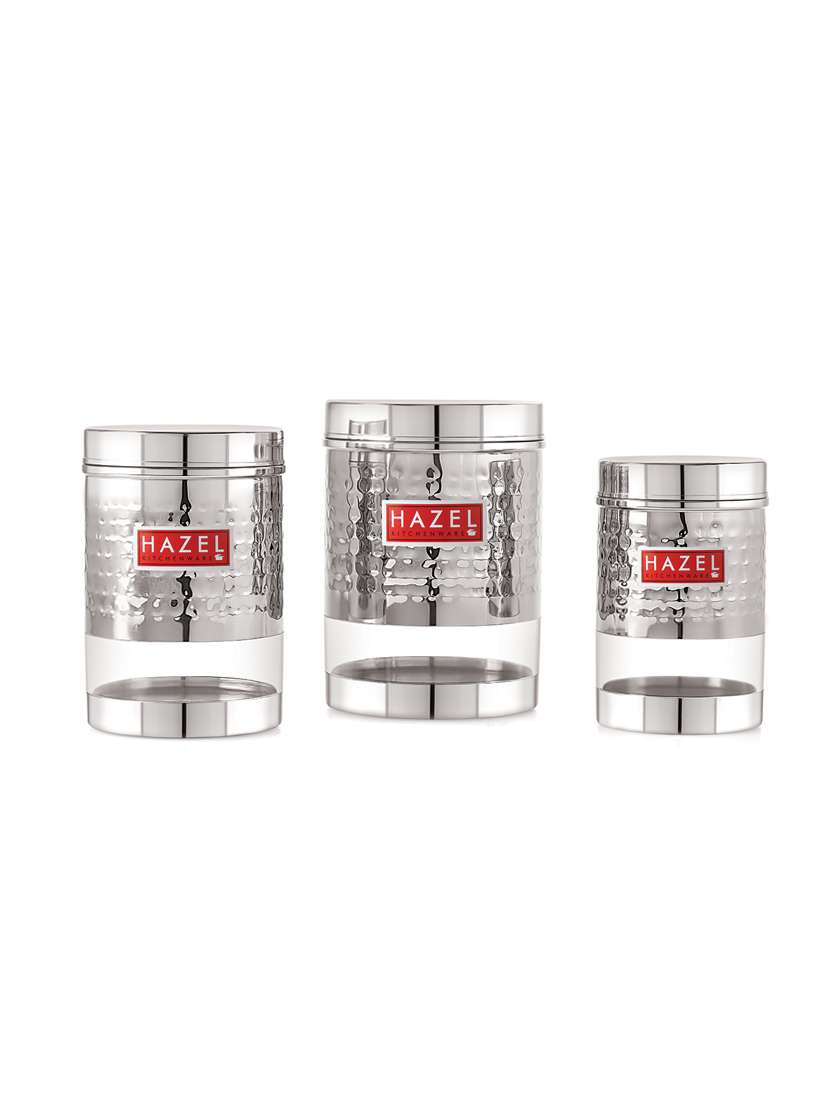 - » hazel stainless steel hammered finish transparent glossy see through container, set of 3, 1350 ml, 950 ml & 600 ml