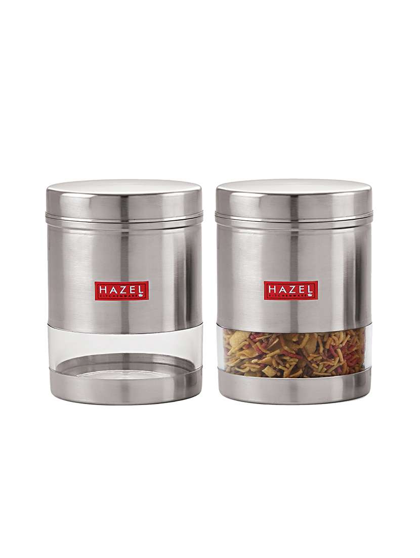 - » hazel stainless steel transparent wide mouth see through container, silver, set of 2, 950 ml
