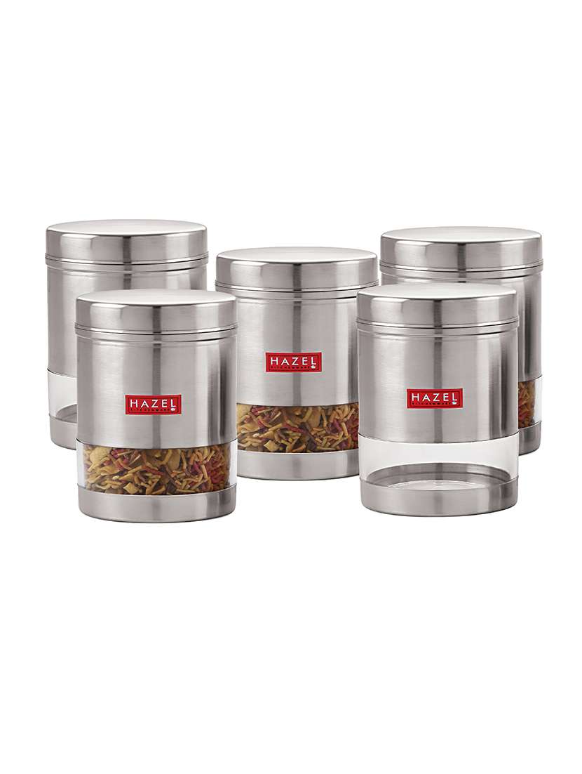 - » hazel stainless steel transparent wide mouth see through container, silver, set of 5, 950 ml