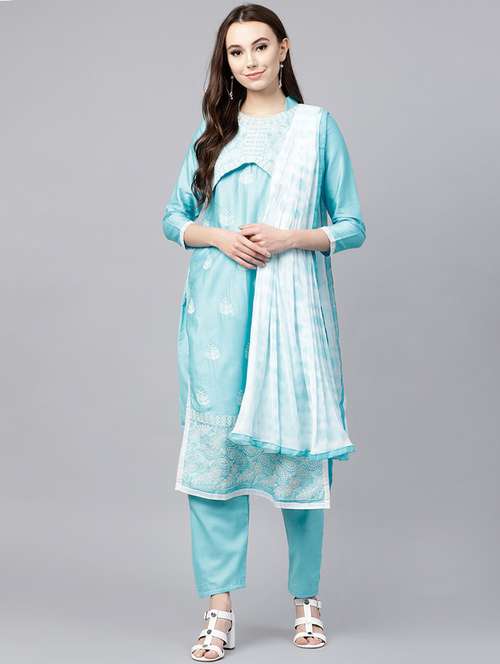 embroidered unstitched churidaar suit - 15453897 - Very Small Image - 1