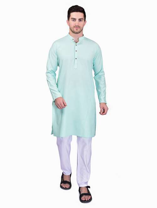 - » sky blue cotton blend kurta pyjama ethnic wear set