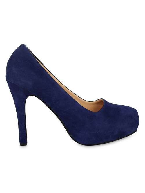 solid navy blue suede pumps