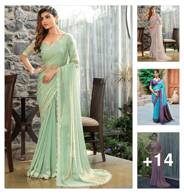 women solid with embellished bordered saree with blouse