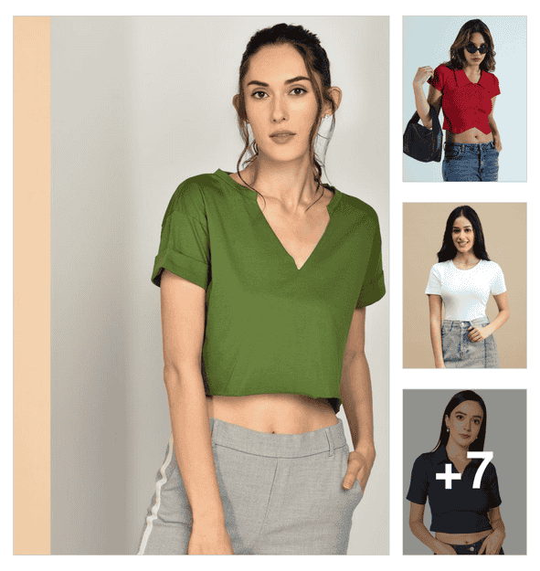 women's crop v neck top