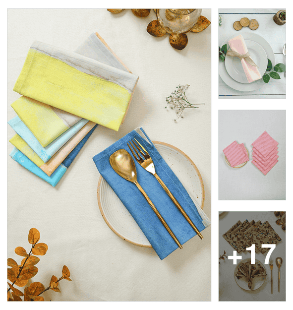 ratan cart multicolor cotton solid 16x16 inch napkin set of 6