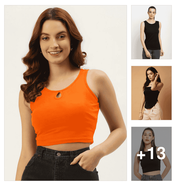 women solid sleeveless crop tank top
