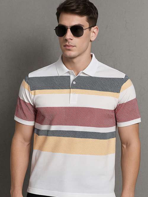men striped short sleeve regular fit polo t-shirt