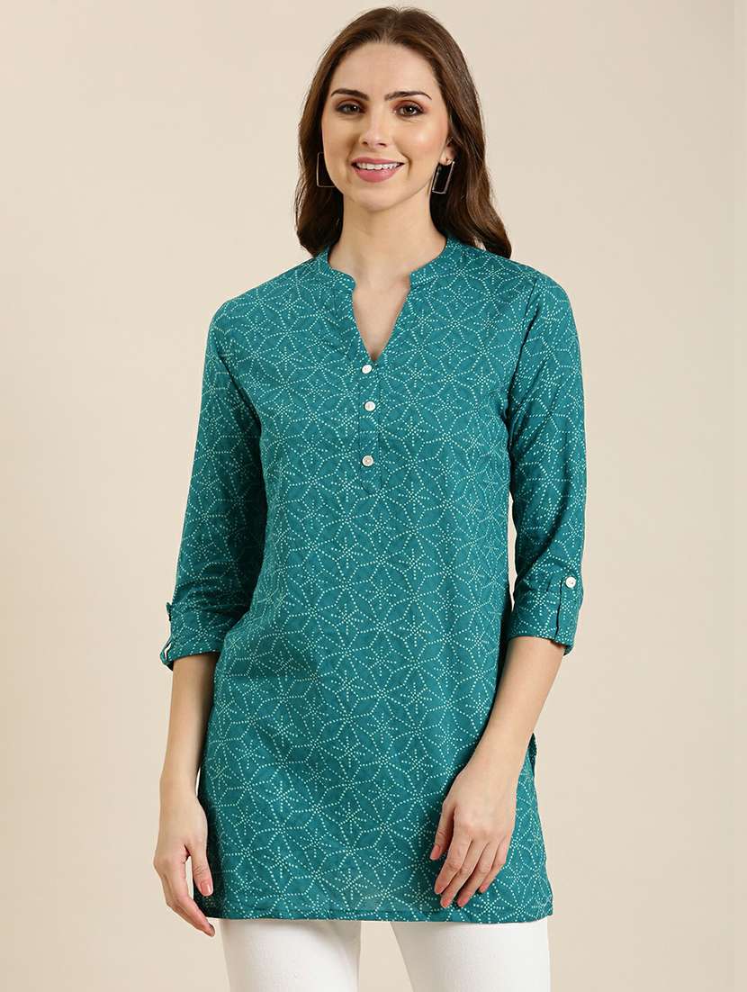 - » women turquoise mandarin neck straight kurti