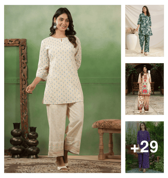 women solid with work long sleeve ethnic co-ord set