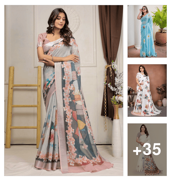 women printed casual wear saree with blouse
