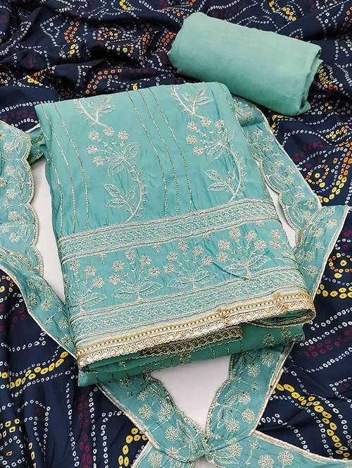 women solid with work embroidered unstitched suit set