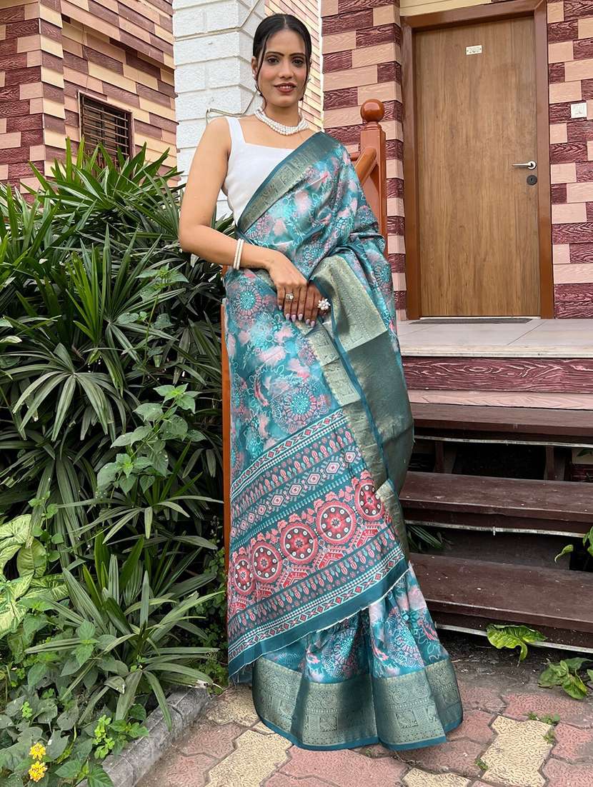 women printed bordered saree with blouse - 21372611 - Very Small Image - 1