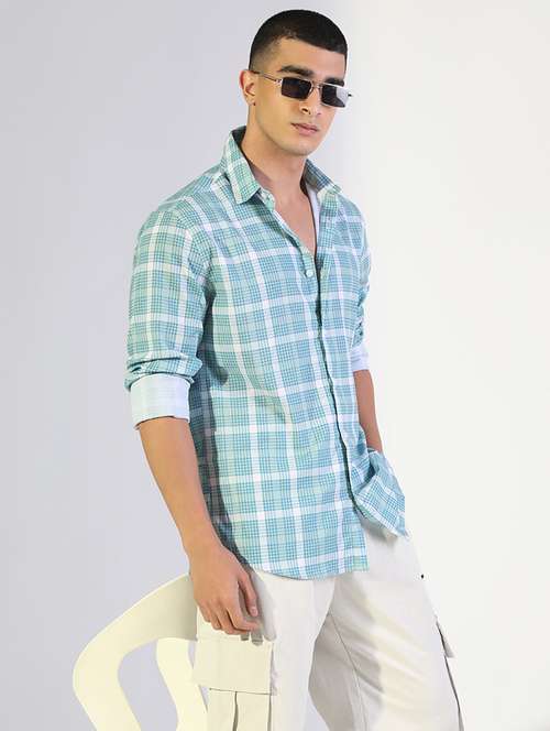 - » men checkered collared long sleeve shirt