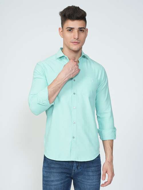 solid turquoise cotton casual shirt - 21142929 - Very Small Image - 1