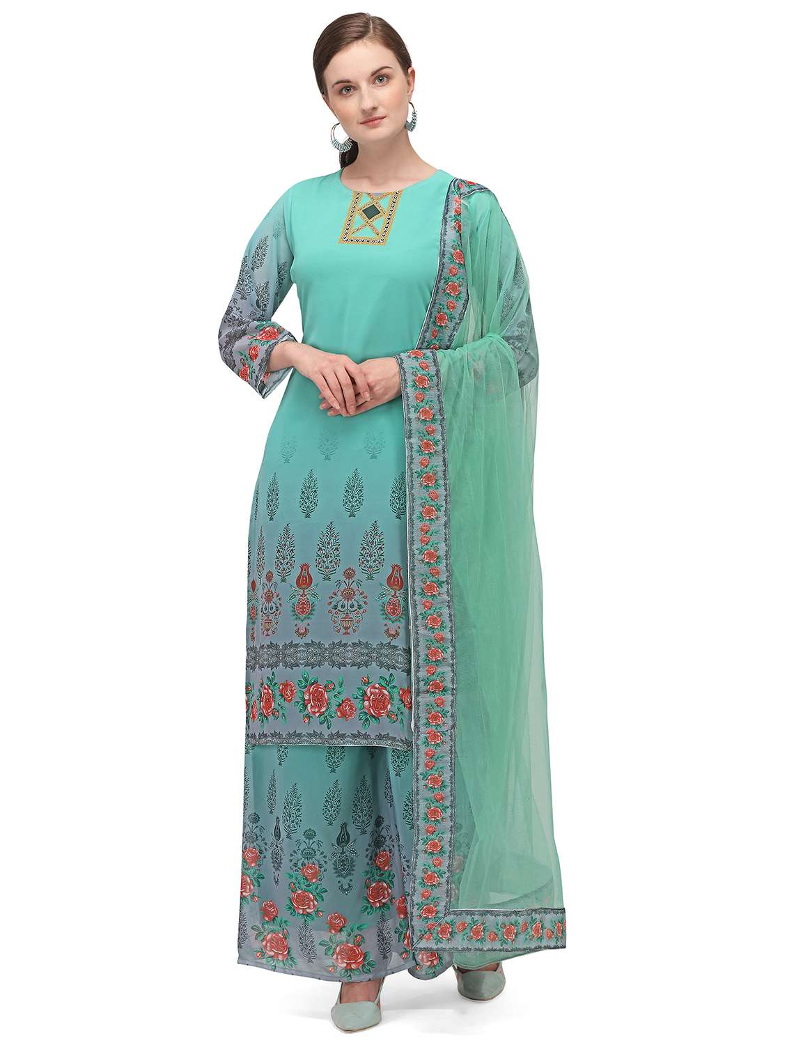 - » turquoise georgette unstitched suit