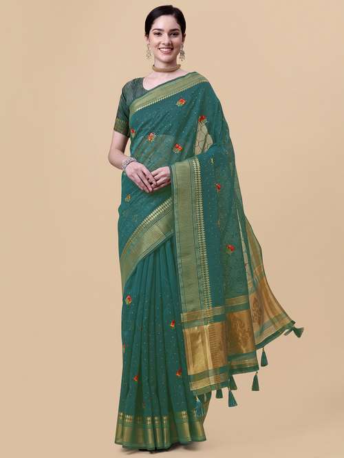- » turquoise linen banarasi saree