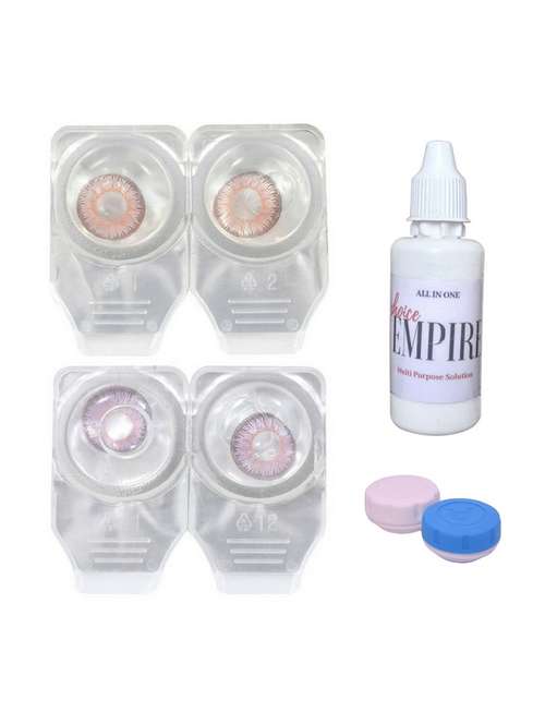 unisex set of 2 contact lenses with solution and 1 case
