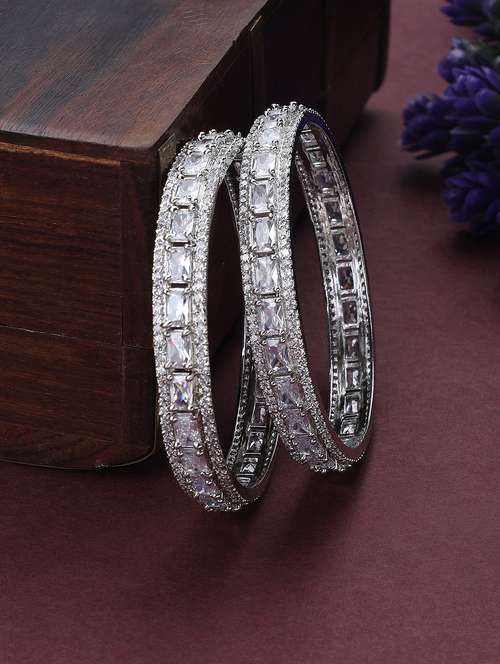 - » crystal cubic zirconia rhodium bangles (pack of 2)