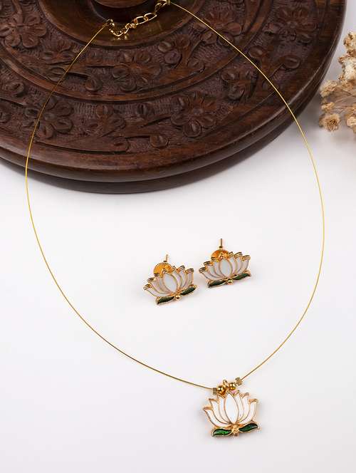 Minimal White Lotus Motif Pendant Set with Invisible chain