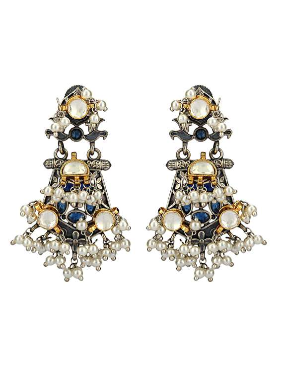 - » dual tone brass beaded oxidised drop earring