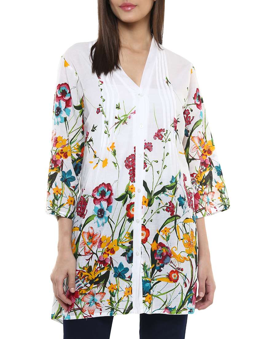 - » white floral printed cotton tunic